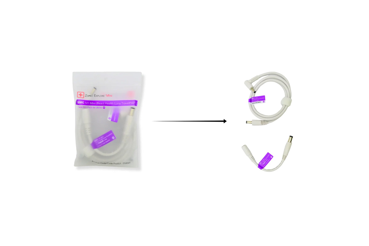 Enhance your CPAP experience with the DC Output & Input Cables designed to connect your Luna Travel CPAP / BMC M1 CPAP device to the Zopec Explore Mini battery. This essential accessory kit ensures your CPAP device stays powered, no matter where your travels take you.
